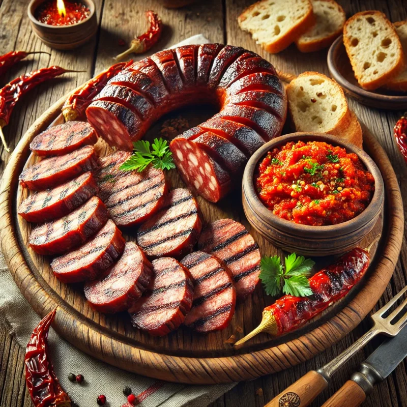 Ароматен, добре изсушен и перфектно овкусен – нашият домашен суджук е истинско удоволствие за ценителите на качествените месни деликатеси! Поднесен с автентична българска лютеница, тази комбинация е създадена да разпали апетита ви.