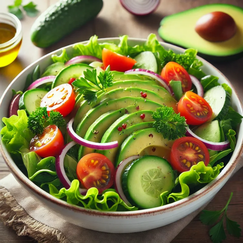 Салатата с авокадо е свежа, лека и питателна – перфектна за здравословно хранене. Комбинира кремообразната текстура на авокадото със свежестта на зеленчуците и балансираните вкусове на подправките.